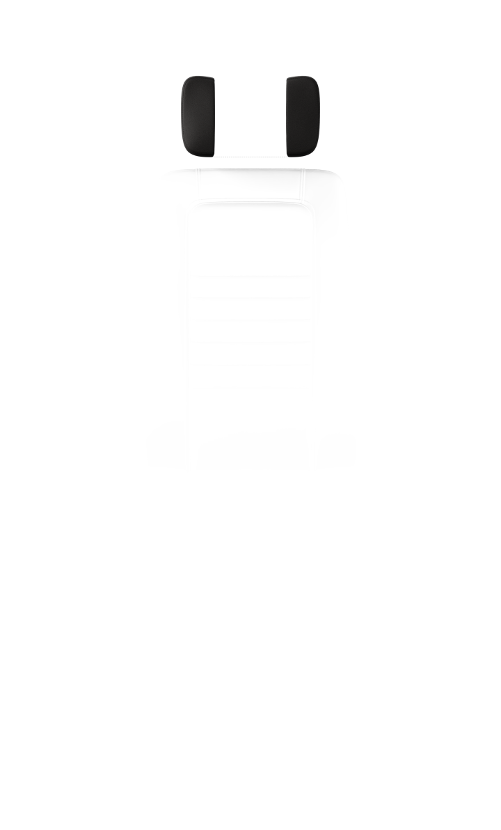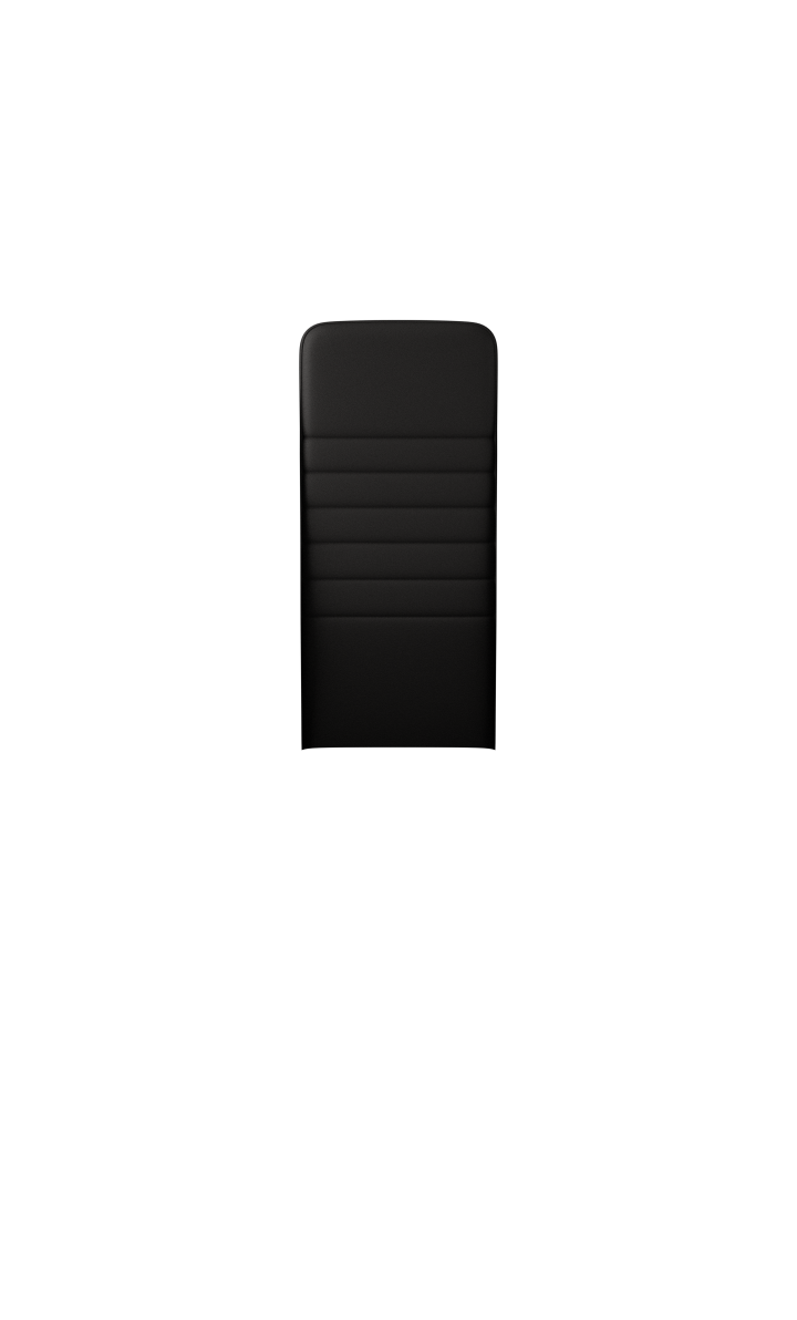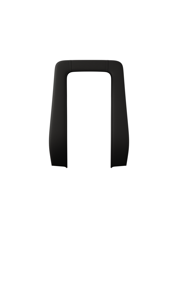 Hoofdsteun in zwart gelakt aluminium. De buitenzijde is altijd gestoffeerd in zwart leder. Verstelbaar in hoogte en hoek.
