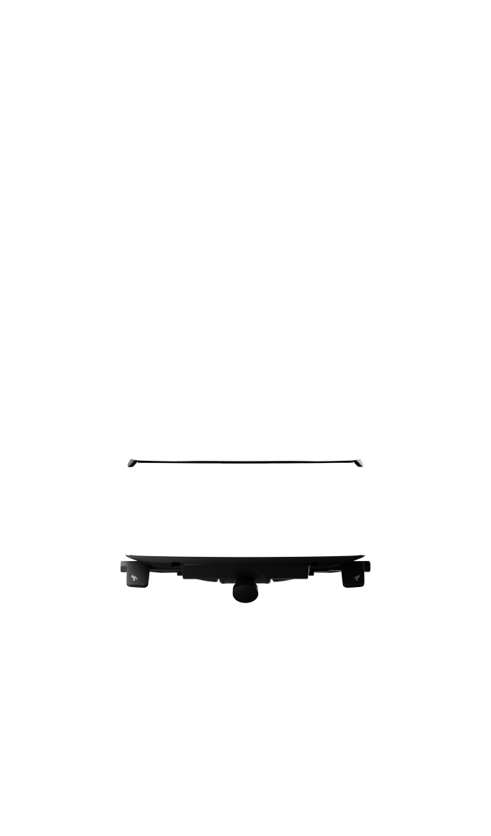 In hoogte, breedte en diepte verstelbaar en roteerbaar. Metalen en kunststof onderdelen in zwart.