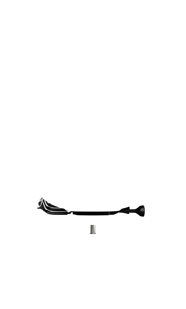 Adjustable in height, depth and angle. Metal parts in silver lacquer and plastic parts in black color.