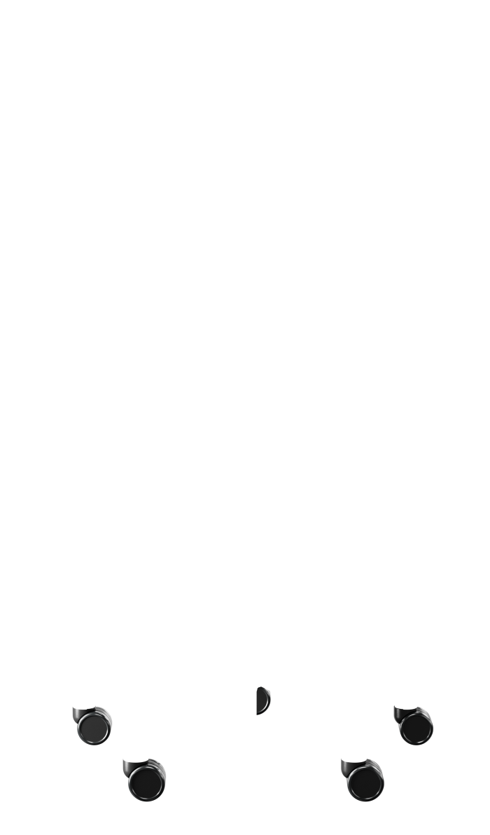 Adjustable in height, depth and width. Metal parts in black lacquer and plastic parts in black color.